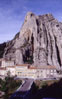 nach Gap (ca. 950 m). Hier wird es dann langsam richtig warm (bis zu 30°). Auch die Vegetation ist nicht mehr so alpin wie bisher. Weiter unten am Flusslauf der Durance entlang, waechst viel Obst und Wein. Entlang der Durance und der wenig befahrenen Autobahn werden die Berge auch etwas flacher und das Tal weiter. Wir kommen so gut vorwaerts auf der breiten Strasse, die wie eine Schnellstrasse anmutet, dass wir eigentlich noch heute unser Ziel ueber Digne-les-Bains und von dort direkt den Lac de St. Croix erreichen koennten. Da wir aber erst morgen erwartet werden, machen wir im malerisch gelegenen, schon recht suedlich anmutenden Sisteron halt und haben noch etwas Zeit fuer eine kleine Besichtigung der Stadt. Vom Weg zur Burg und von der Burg selbst hat man einen wunderbaren Blick auf das Tal der Durance und die gegenueber liegenden senkrechten Felsen. In den Falten der Felsen entdecken wir auch einige Sportkletterer.