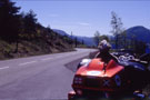 Danach wird die Strasse dann schmaeler und steiler, jetzt geht's wirklich ins Hochgebirge. Sie steigt innerhalb von 26 km hoch ueber 1347 m am Pont Haut ueber 2.261 m am Col des Fourches und 2680 am Col des Raspaillon auf endgueltig 2802 m am Col de la Bonette. um den Gipfel, den Cime de la Bonette kann man im Einbahnstrassensystem herumfahren, bis zum Gedenkstein fuer die Strassenbauer am Bonette.