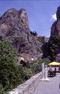Frueher war Moustier-Ste.-Marie wegen seiner Fayancewaren weltweit beruehmt. Auch heute gibt es noch einige Kunsthandwerker, die dieses franzoesische "Porzellan" (aus dem weissen Ton der Umgebung) herstellen und bemalen. Es gibt auch ein kleines Fayance-Museum. In Moustier findet man einige gute Restaurant, die auch von vielen Einheimischen besucht werden, wie wir von den Autokennzeichen ablesen konnten. An dem Sonntag, an dem wir Moustier besucht haben, war gerade der franzoesische Muttertag, da wird auch die franzoesische Mutter zum Essen ausgefahren, damit Vater und Kinder nicht abspuelen muessen. Allerdings waren die Preise auch diesem Festtag "angepasst" und es gab fast ueberall nur "Menu de Fete des Mamans".