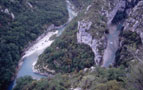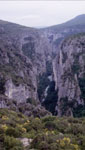 bis nach Castellane. In Castellane verlassen wir die Route Napoleon und folgen dem Flusslauf des Verdon zum "Grand Canyon du Verdon", dem groessten Flusscanyon Europas, dessen senkrechte Waende bis zu 700 m hoch sind. Beim Anblick einer solchen landschaftlichen Pracht nehmen wir uns vor, den Canyon noch mal in aller Ruhe ganz zu umrunden, und auch die ganze Schlucht abzufahren. Die Hauptstrasse kuerzt bei la Palud ein grosses Stueck des Canyons ab.