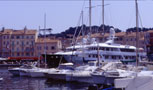 Zuerst fuehrt uns die Strasse oberhalb der Stadt durch ein "Arme-Leute-Viertel" mit hohen Mauern, Video-Ueberwachung und Alarmanlagen. Spaeter landen dann, als Kontrastprogramm, in der Altstadt von Cannes mit engen Gassen, Maerkten und kleinen Laeden fuer die "arbeitende Bevoelkerung" der Stadt. Als wir schon fast das Gefuehl haben, dass wir uns verfahren haben, sehen wir irgendwo ein Schild zum "bord de la mer" und kommen auf die Kuestenstrasse, wo wir ja hin wollen.
