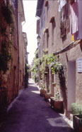 Wir finden einen Parkplatz auf dem Gehweg in der Naehe der Innenstadt bei der Firma Fragonard, der wir spaeter einen Besuch abstatten wollen. Zunaechst geht es aber in die Stadt. Es gibt eine huebsche, sehr belebte Fussgaengerzone, wo die Einheimischen und die Touristen sich zum Bummeln und Einkaufen treffen. Vor mindestens jedem 2-ten Haus stehen Koerbe mit Seifen und Duftessenzen, natuerlich hauptsaechlich Lavendel, danach riecht es hier auch ueberall. Von der Terrasse des Hotel de Ville, dem Rathaus, kann man in der Ferne schon das Meer sehen. Wir biegen von der Flaniermeile ab und landen in der Altstadt. Hier haben wir auf einmal das Gefuehl, wir sind im Araberviertel gelandet. Ueberall kleine Marktstaende, Lebensmittellaeden, Werkstaetten und Bars. Gleich um die naechste Ecke ist das Polizeirevier und auch ein nettes Restaurant an einem grossen Brunnen unterhalb der Kathedrale, wo wir ein gutes Menu de Jour geniessen koennen.