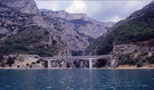 Zunaechst fahren wir von Bauduen am See entlang bis zur Staumauer, hier biegen wir ab in die untere Verdon-Schlucht und fahren nach Montagnac, einem Bergdorf, das sich in luftiger Hoehe am Berghang befindet.