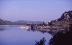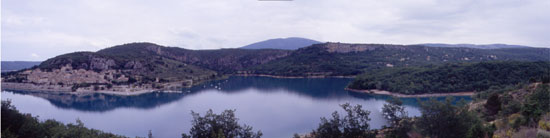 Der Weg fuehrt uns weiter am See entlang zum "Badestrand", in dessen Naehe auch der Verdon in den See muendet. Hier kann man Picknick machen oder mit dem Boot in die Schlucht hineinfahren. Dies nehmen wir uns fuer einen anderen Tag vor, wenn wir uns dafuer Zeit lassen koennen. Die Strasse verlaeuft noch an les Salles vorbei, der urspruengliche Ort ist bei Fuellung des Stausees im See versunken und hier wieder neu aufgebaut worden. Es ist inzwischen ein Touristenort und besitzt auch einen kleinen Segelhafen. Die Strasse durch Eichenwald und Felder nach Bauduen kennen wir jetzt schon von der Hinfahrt.