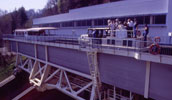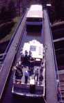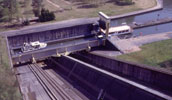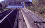 Zum Angebot des Veranstalters gehört auch eine kostenlose Fahrt mit den eigenen Booten mit dem Schiffsaufzug in Arzviller. Wir haben zunächst einige Mühe, das Schiffshebewerk zu finden, obwohl es eigentlich ganz gut ausgeschildert ist - aber wer denkt schon, dass "plan-incline" Schiffshebewerk heißt?? Als wir es mit Nachfragen dann doch gefunden haben, haben wir noch etwas Zeit die anderen "in Aufzug" zu beobachten, bevor auch wir drankommen. Die Schiffe überwinden einen Höhenunterschied von 45 m, dadurch wurden gegenüber der alten Methode 17 Schleusen eingespart.