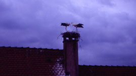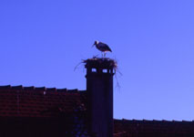 Am Abend machen wir noch einen Rundgang durch das schöne alte Städtchen. Auf den Dächern der Häuser haben sich einige Storchenpaare häuslich niedergelassen. Direkt gegenüber von unserem Zimmerfenster im 2. Stock ist auch ein Nest, das aber wohl vom Wind stark mitgenommen ist. Der Herr Storch wartete wohl noch auf seine Partnerin um "sein Haus" wieder aufzubauen. |