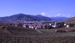 Nach einem ordentlichen elsässischen Frühstücksbuffet machen wir uns auf die Weg, zunächst, weil uns die Strecke durch die Weinberge so gut gefallen hat, über Niedermorschwihr nach Ingersheim. Wir wollen nicht nur an den Weinorten vorbei fahren, sondern auch etwas davon sehen. Zunächst geht es auf einem Umweg nach Kayersberg, dann über Kientzheim, Sigolsheim, Mittelwihr und Riquewihr, am Storchenpark vorbei in die Cremant-(Sekt)-Stadt Ribeauvillè. Unterwegs finden wir auf einem Parkplatz einen Käsewagen, der gerade sein Angebot auslegt - alles guter französischer Käse, in der Mehrzahl, wie es sich hier gehört, Munster. Wir lassen uns nicht zweimal bitten und kaufen einige Stücke ein, wir haben ja unsere Eistasche mit - außerdem gibt es noch einen original Elsässer Gugelhupf.
