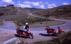 Dieses Mal meiden wir die Autobahn, sondern fahren von zu Hause über die Schnellstraße nach Langen und über Groß-Gerau zum "Motorradtreff Fähre Kornsand". Wir überqueren hier den Rhein und fahren zunächst auf die B 420 um über Wörrstadt und Alzey in Richtung Süden zu fahren. In Udenheim entdecken wir jedoch schon eine Abkürzung nach Alzey, und fahren über eine schöne wenig befahrene "gelbe" Straße über einige Weindörfer nach Alzey hinein. Von dort geht es über die B 271 über Grünstadt, Bad Dürkheim entlang der Deutschen Weinstraße über Neustadt nach Landau, hier legen wir die erste kurze Pause ein.