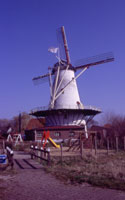| In dem nächsten größeren, sehr hübschen Ort, Haamstede, gibt es einige alte Mühle, eine ist die Pannekokenmoelen in der es ab April alle möglichen Pfannkuchengerichte aus in der Mühle selbst gemahlenem Mehl und einen Mühlenladen gibt. Leider sind wir dazu auch zu früh. (Infos über Öffnungszeiten und ähnliches gibt es unter www.Pannekokenmolen.nl | ![]() |