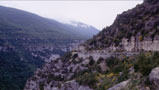 Zunaechst geht es an den Balcons de la Mescla vorueber ueber den Canyon de l'Artuby, einem Nebenfluss des Verdon (hier nicht erschrecken, wenn man Schuesse hoert, direkt hinter der Strasse beginnt ein Militaer-Gelaende), und dann auf der anderen Seite der Schlucht, der Corniche Sublime entlang. Die Aussichten hier sich nicht ganz so haeufig und nicht ganz so spektakulaer aber man hat immer die Strasse auf der anderen Seite im Blick, auf der man vorher gefahren ist. Die Corniche ist sehr kurvenreich und auch wesentlich schmaeler als die "Aussichtsstrasse", es gibt auch nicht ganz so viele "Haltestellen". Zum Ende der Strasse geht es von ca. 1.200 m ueber den Cirque de Vaumale nach Aiguines,