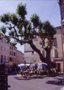 Das naechste groessere Staedtchen, in dem man auch einen Supermarkt und eine Tankstelle findet, ist Aups. Der Ort hat zahlreiche Gaesschen mit huebschen, kleinen Geschaeften und Wohnhaeusern. In Aups ist am Mittwoch und Samstag Markttag. Hier gibt es alle moeglichen Produkte aus der Umgebung: Gemuese, Obst, Wuerste, Honig, schwarzen Nougat (eine Spezialitaet der Gegend aus Honig und Mandeln), Oliven aber auch Keramik, provenzalische Stoffe (Tischdecken in allen Groessen), T-Shirts, Kleider und Schuhe. Auf dem Marktplatz stehen riesigen uralten Baeumen, sodass hier auch im Hochsommer eine angenehme Temperatur herrscht. Waehrend der uebrigen Wochentage sind hier der Hauptparkplatz des Ortes und ein Boule- (Petanque-) Platz, auf dem es oft, auch bei kuehlen Temperaturen, heiss hergeht. In der Umgebung von Aups gibt es viele Olivenbaeume, Weinanbau und natuerlich riesige Lavendelfelder. In den Eichenwaeldern der Gegend gibt es aber auch Trueffel. In Aups ist deshalb im Winter regelmaessig Trueffelmarkt.