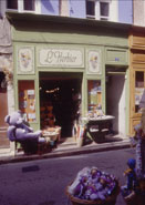 So gestaerkt machen wir uns auf zu Fragonard, und landen statt zur Besichtigung gleich im Verkaufs- und Probierraum, in dem sich gerade eine ganze Schulklasse aus Deutschland durch die Flaeschchen probiert. Wir mischen uns darunter und merken, dass es gar nicht so einfach ist, den "richtigen" Duft zu finden, da auch hier dieses Gemisch aus vielen verschiedenen Duftwaessern in der Luft liegt. Wir glauben zwar, das Richtige gefunden zu haben, verziehen uns aber wieder, nach so viel Duft, brauchen wir erstmal frische Luft. Da wir sowieso planen noch einmal hier vorbeizukommen, wenn wir nach Cannes oder Nizza fahren, machen wir uns auf den Rueckweg, statt einzukaufen.