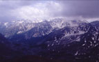 Wir fahren auf den Col de l'Iseran (2.764 m). Hier oben liegt recht und links der Strasse noch Schnee aus dem letzten Winter, Gott sei Dank nicht auf der Strasse. Recht kurvenreich ist dann auch wieder die Abfahrt zu dem bekannten Wintersportort Val d'Isère (1.930 m). Langsam ziehen sich Gewitterwolken ueber den Bergen zusammen.